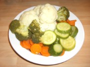 Damit werden Sie reichlich mit Vitaminen, Mineralstoffen sowie Ballaststoffen und sekundären Pflanzenstoffen (z. B. Carotinoiden, Flavonoiden) versorgt. Das Beste, was Sie für Ihre Gesundheit tun können. Außerdem haben die meisten Obst- und Gemüsesorten auch wenig Kalorien. Z.B. 100 g Blumenkohl nur 25 Kcal und 100 g Champignons sogar nur 22 Kcal.